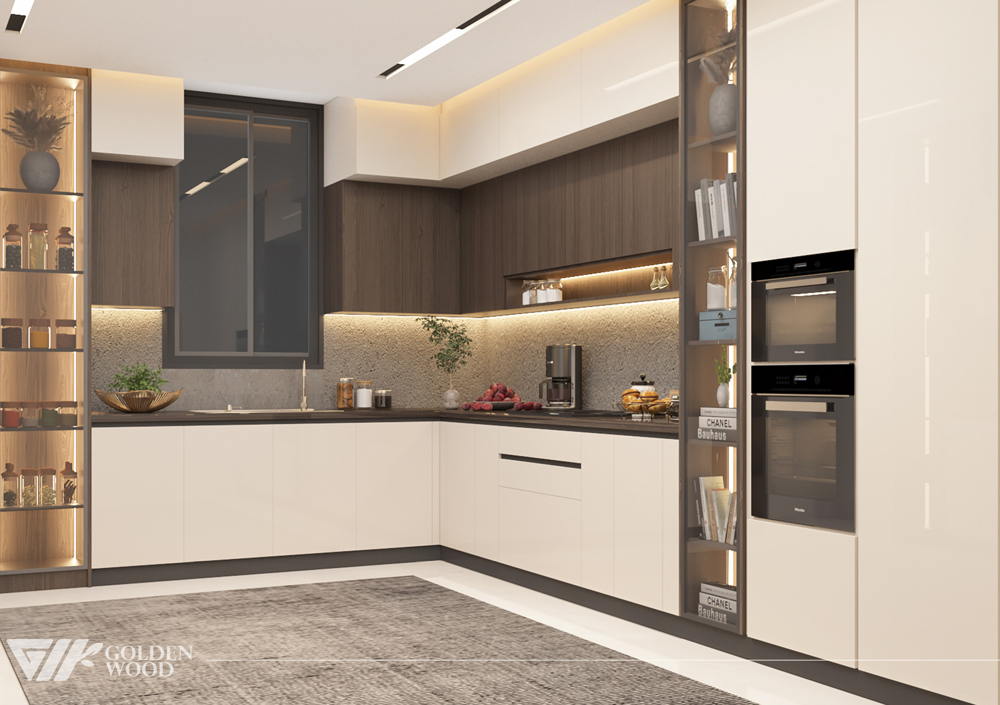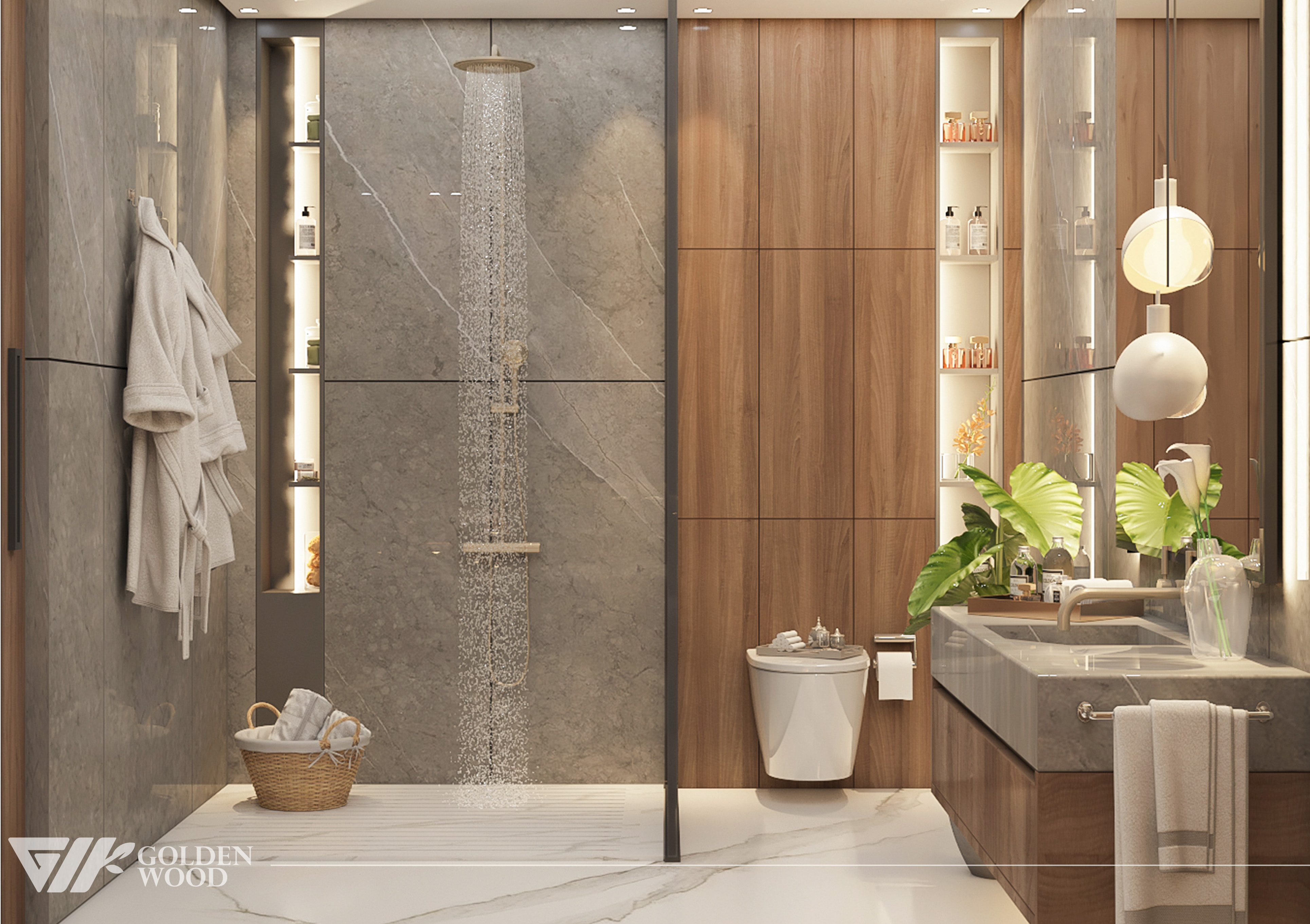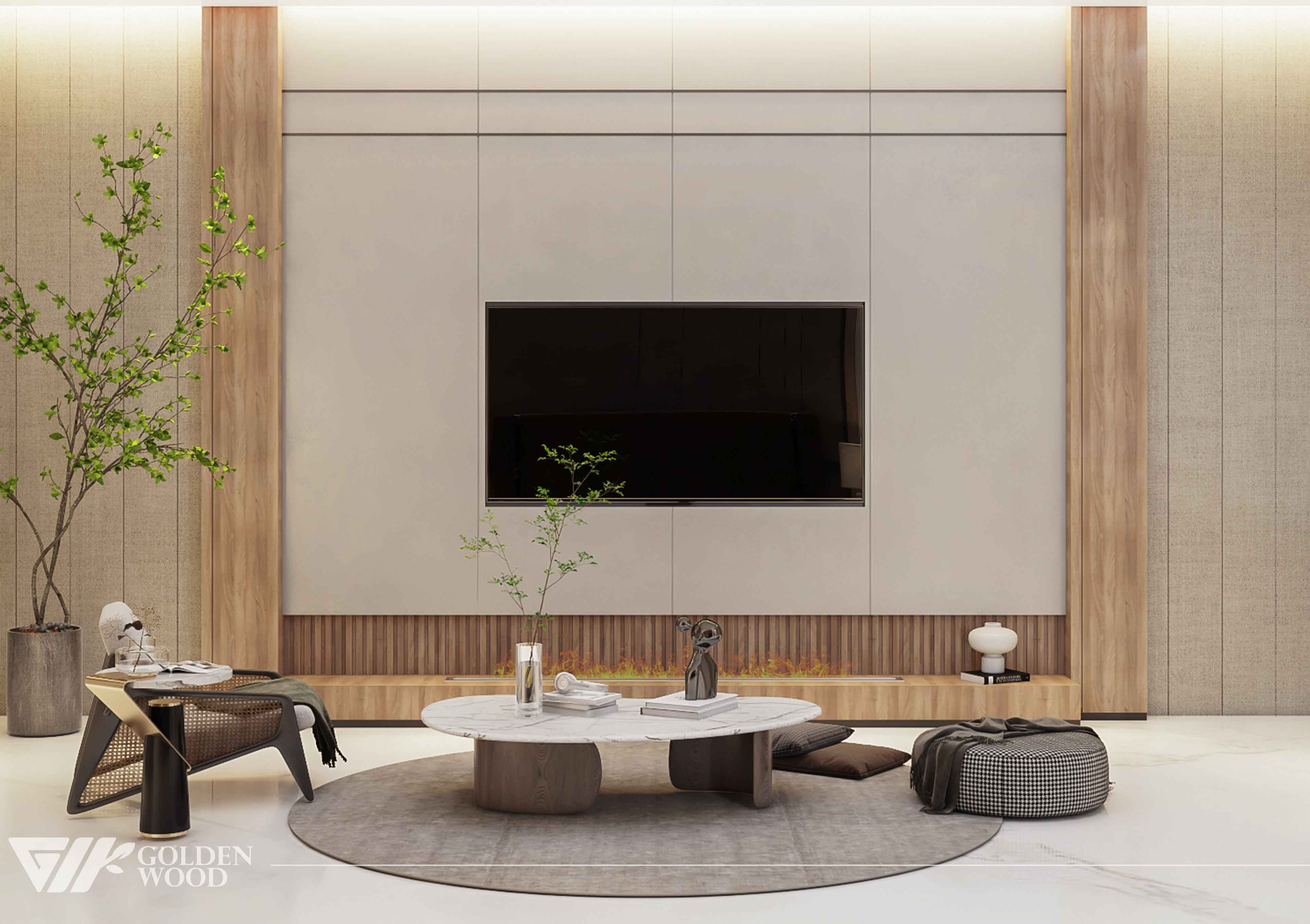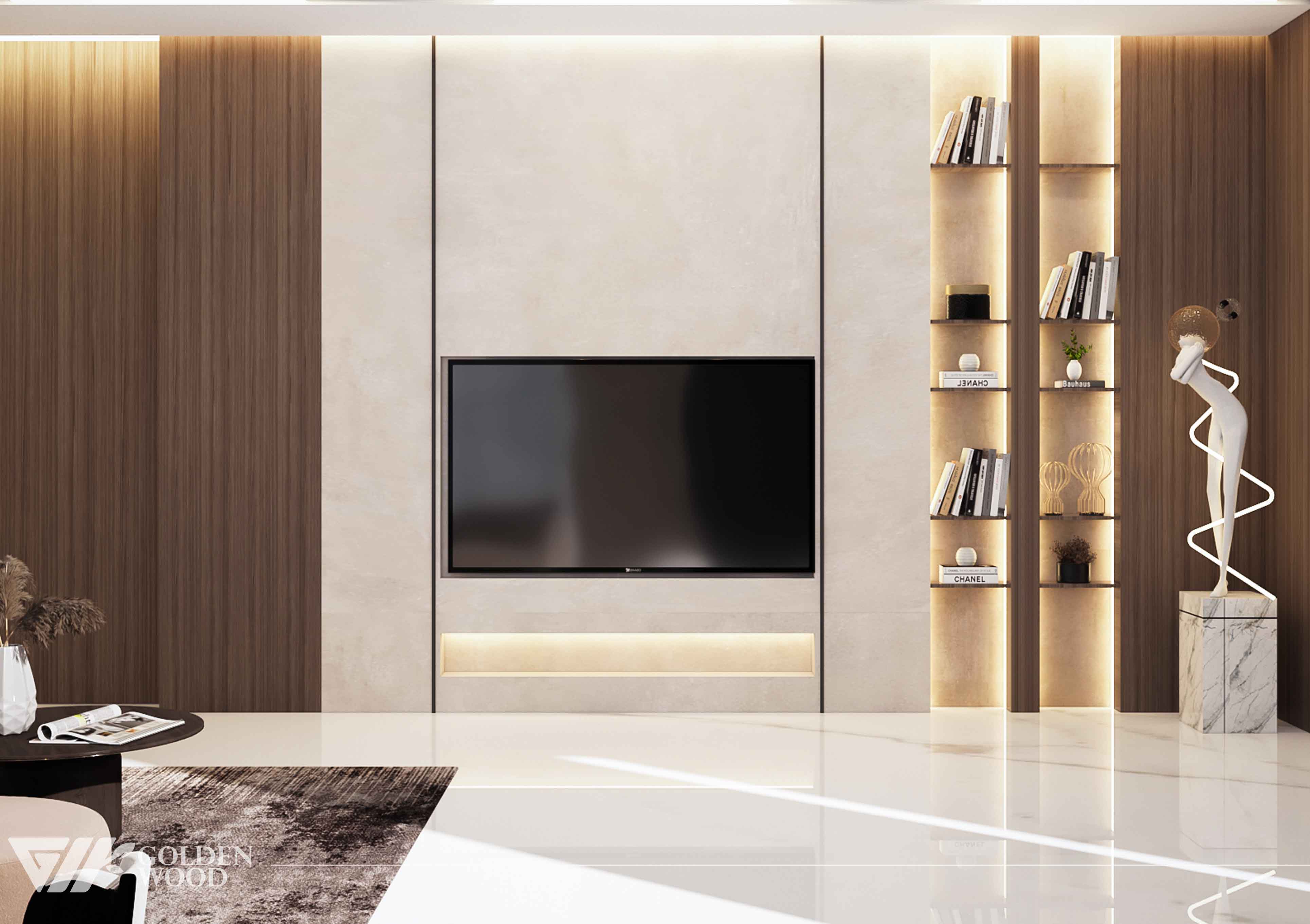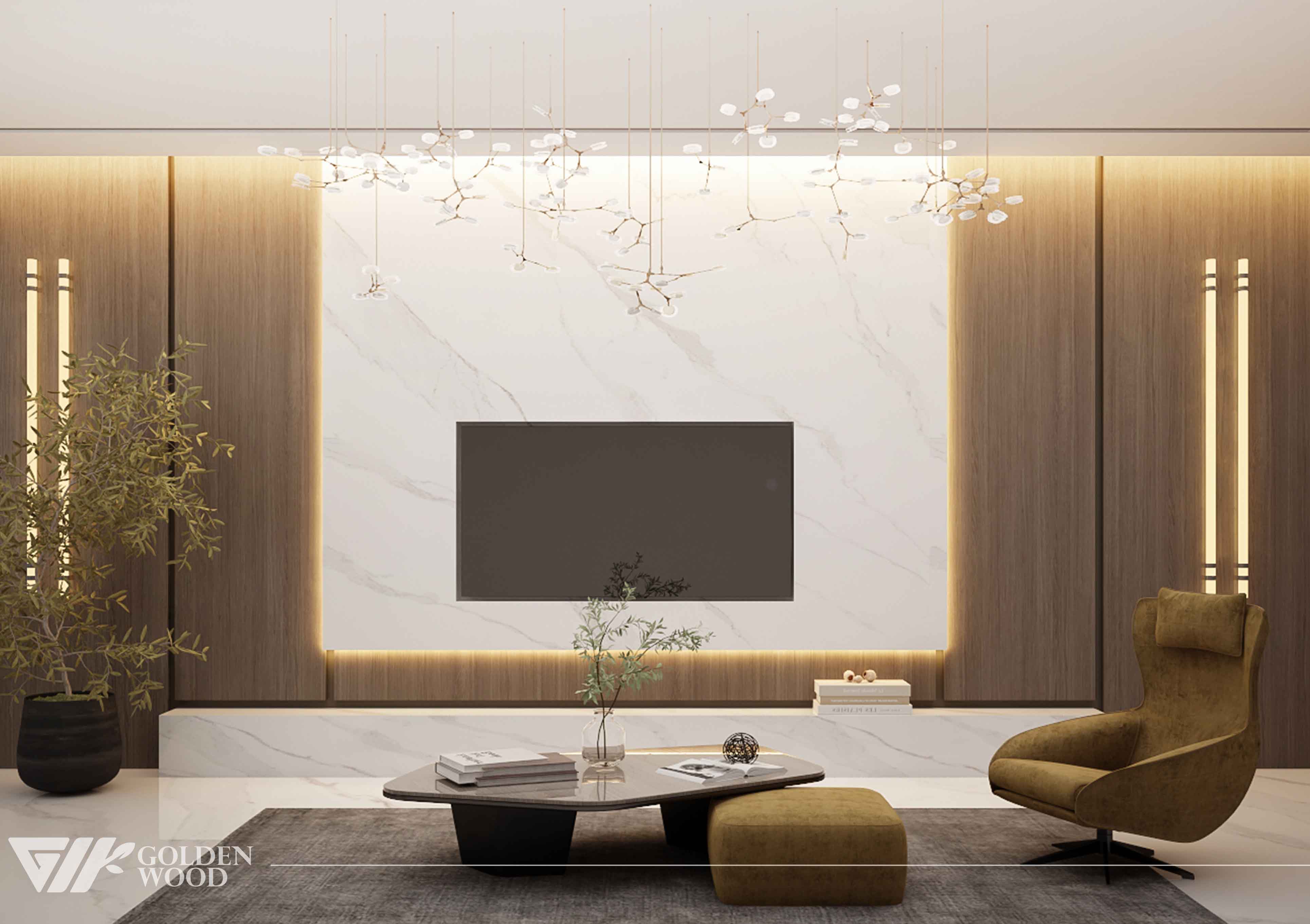 Showcases a modern, luxurious interior design with a focus on clean lines, soft neutral tones, and elegant materials. The spaces appear spacious and serene, featuring elements such as velvet textures, sleek furniture, and sophisticated lighting. The first image highlights a contemporary bedroom and living area with earthy tones and minimalist decor. The second image presents a serene, stylish bedroom with a built-in closet system and plush bedding. The third image features a modern living room with a sectional sofa, a designer chandelier, and tasteful decorative accents. Each space is thoughtfully designed to create a sense of comfort and refinement. The design seamlessly blends practicality with aesthetics, offering a harmonious living environment.