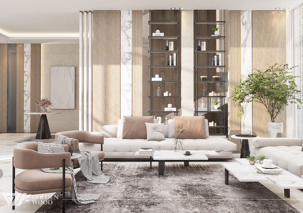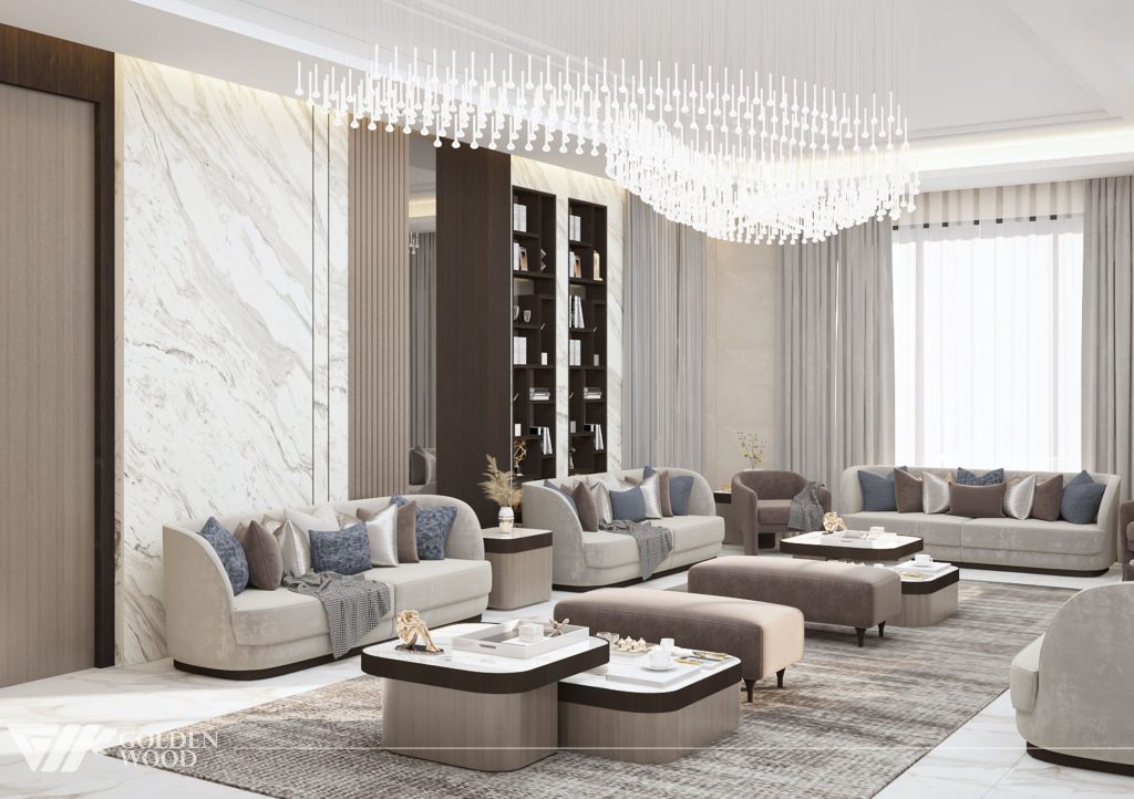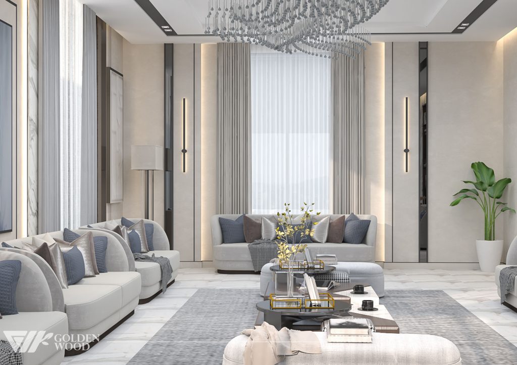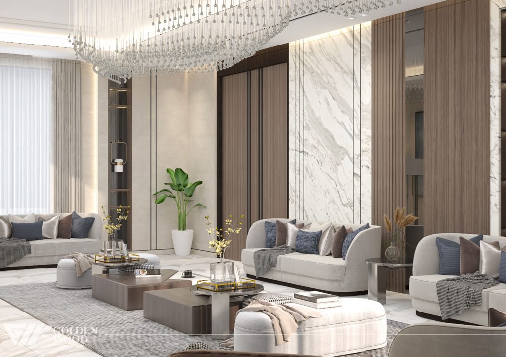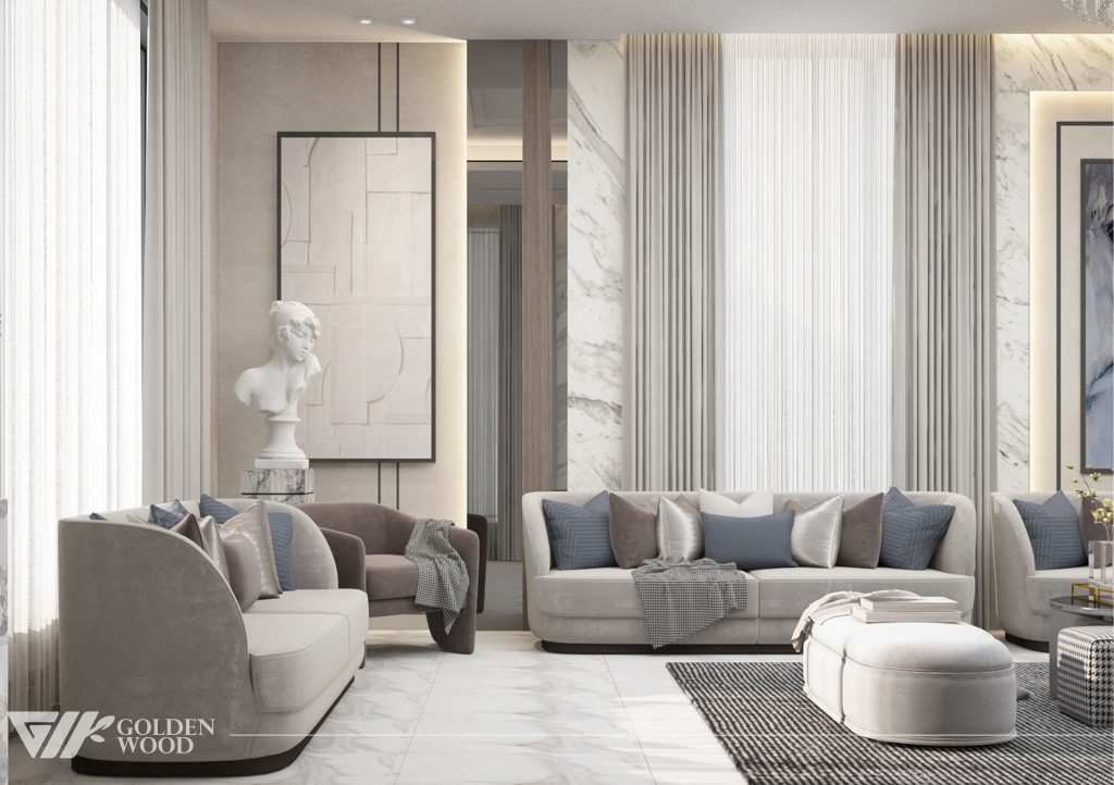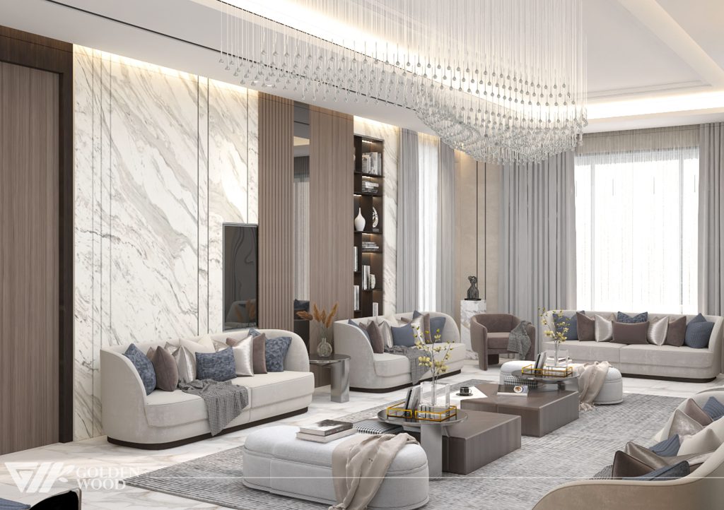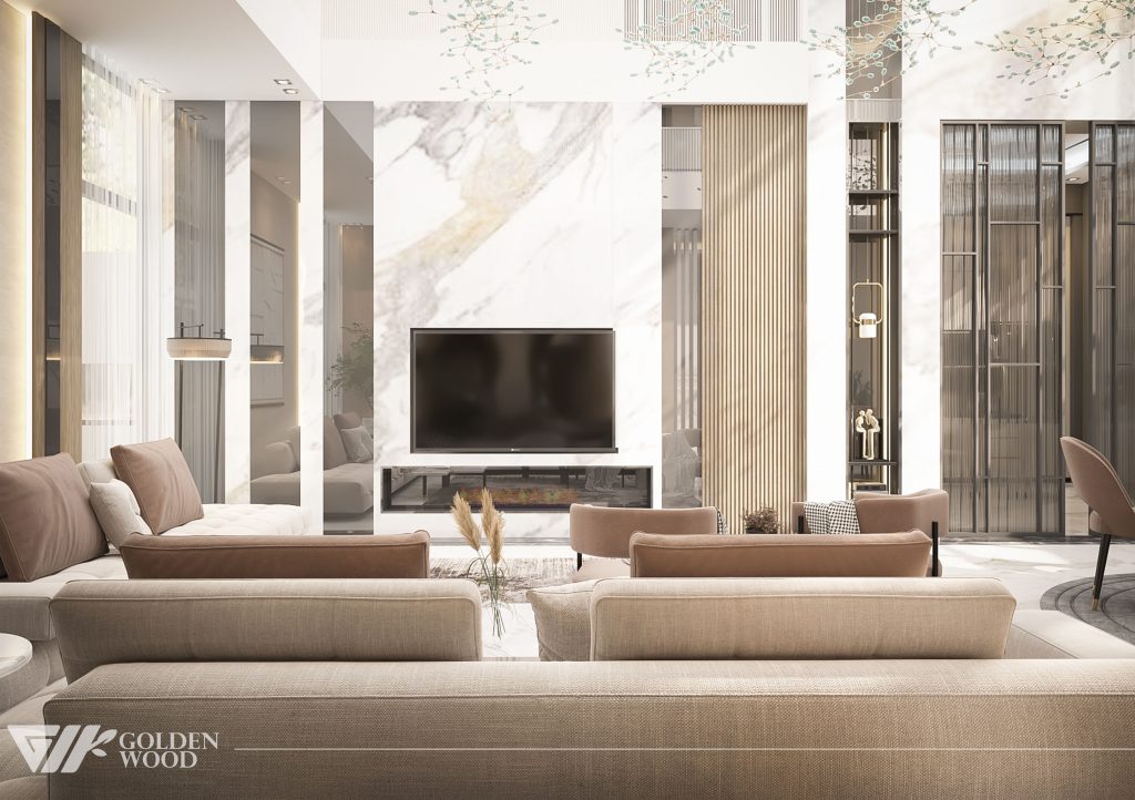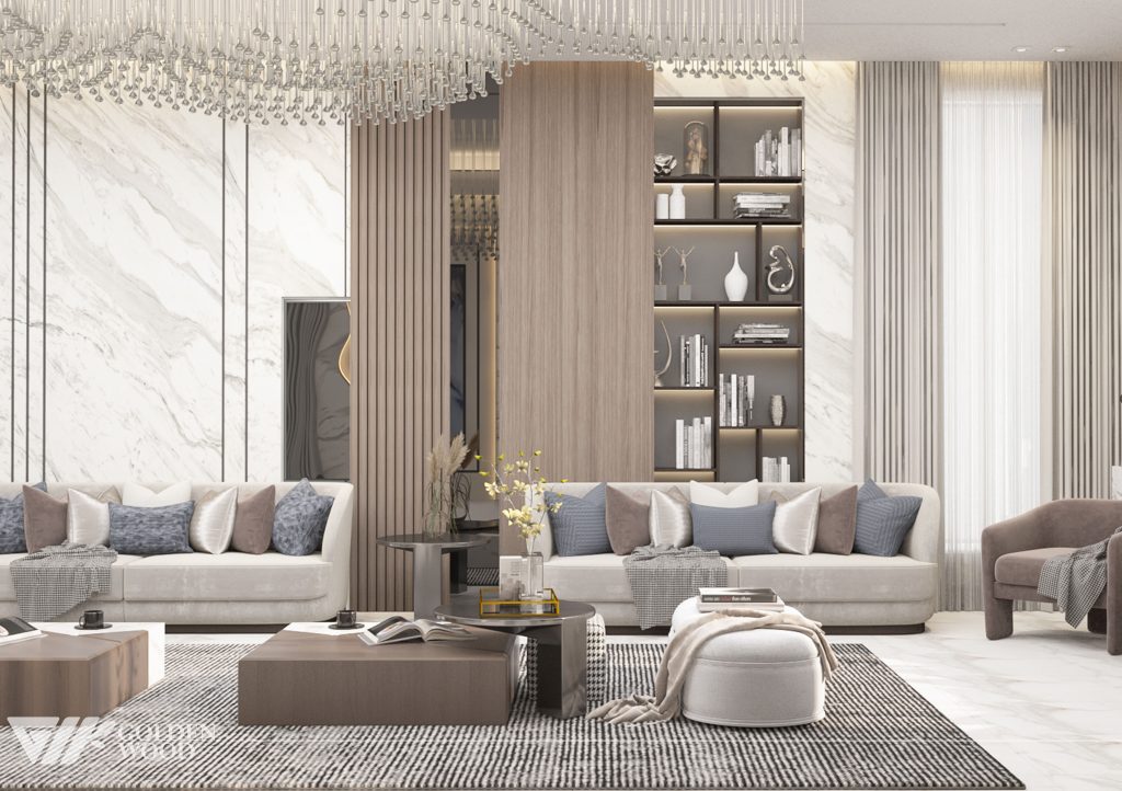 This luxurious residential project showcases a harmonious blend of modern elegance and subtle opulence. Featuring open, light-filled interiors with double-height ceilings, the design emphasizes soft neutral palettes, premium materials like marble and wood, and carefully curated decor.