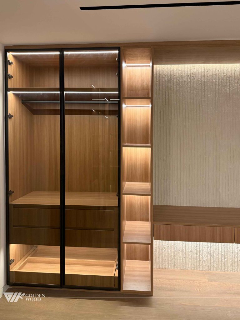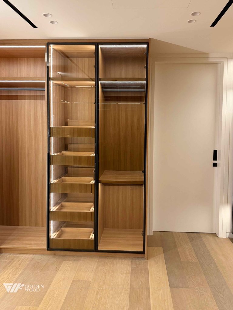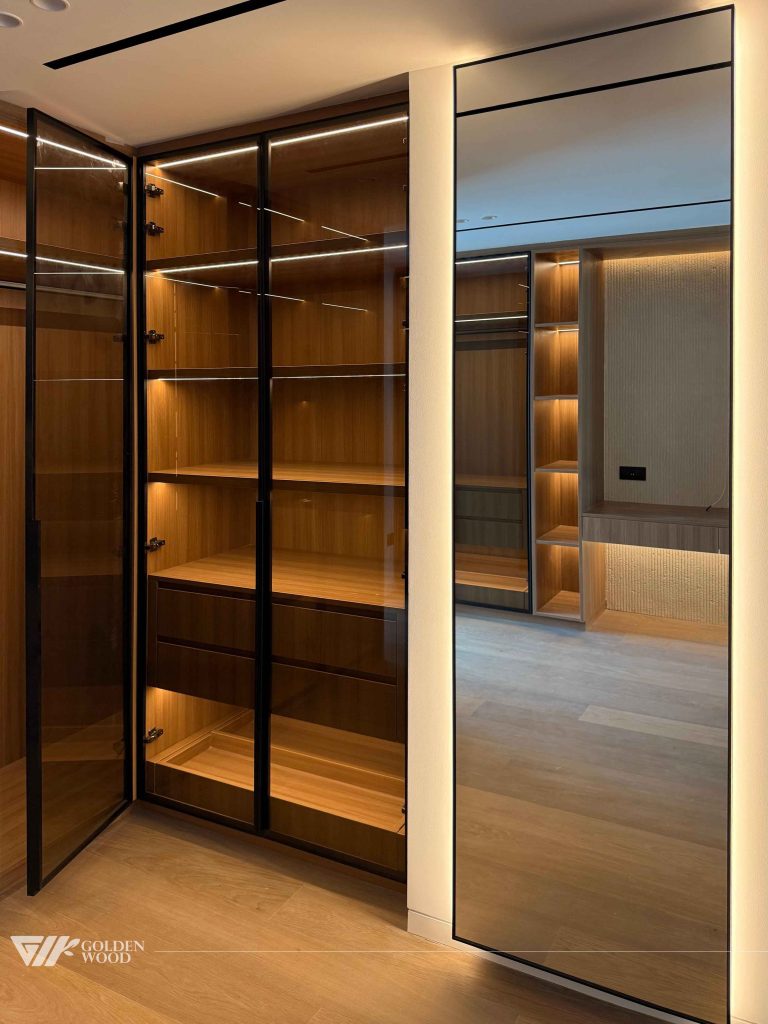 The GW24-303 C31 Villa is a contemporary architectural masterpiece, blending modern design with elegance. The villa features expansive living spaces with sleek wooden finishes and intricate lighting details. The interior boasts a sophisticated ambiance with beautifully crafted closets that include integrated lighting, giving a luxurious feel. The bedrooms are designed with a minimalist touch, offering comfort and functionality. The design is further accentuated by the use of glass and wood, enhancing the villa’s spaciousness and elegance. This villa is a perfect blend of style, comfort, and modern luxury.