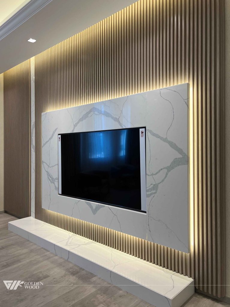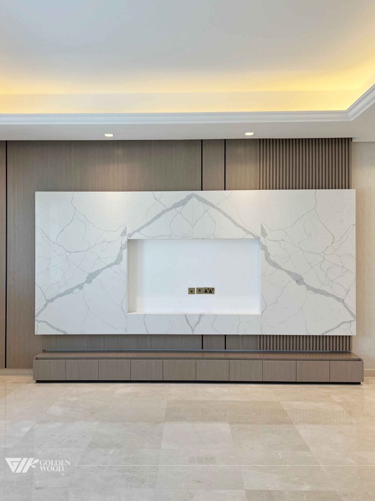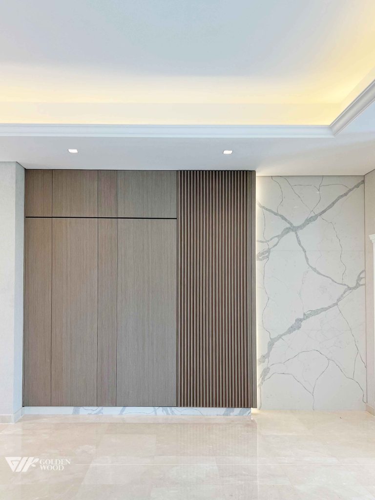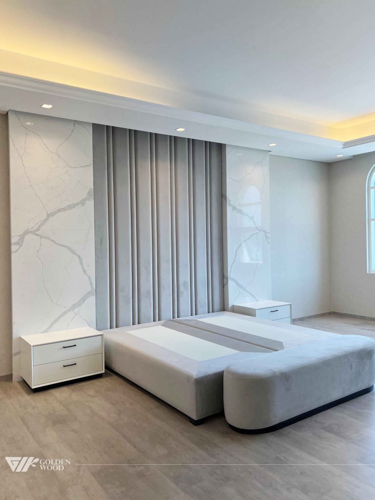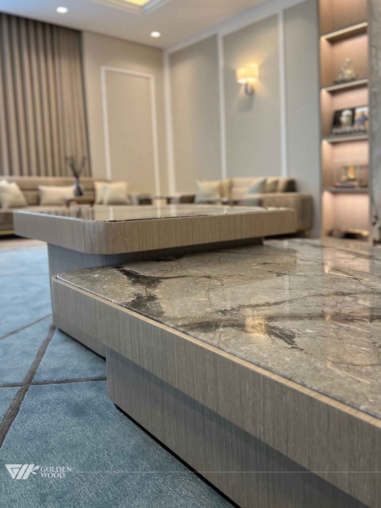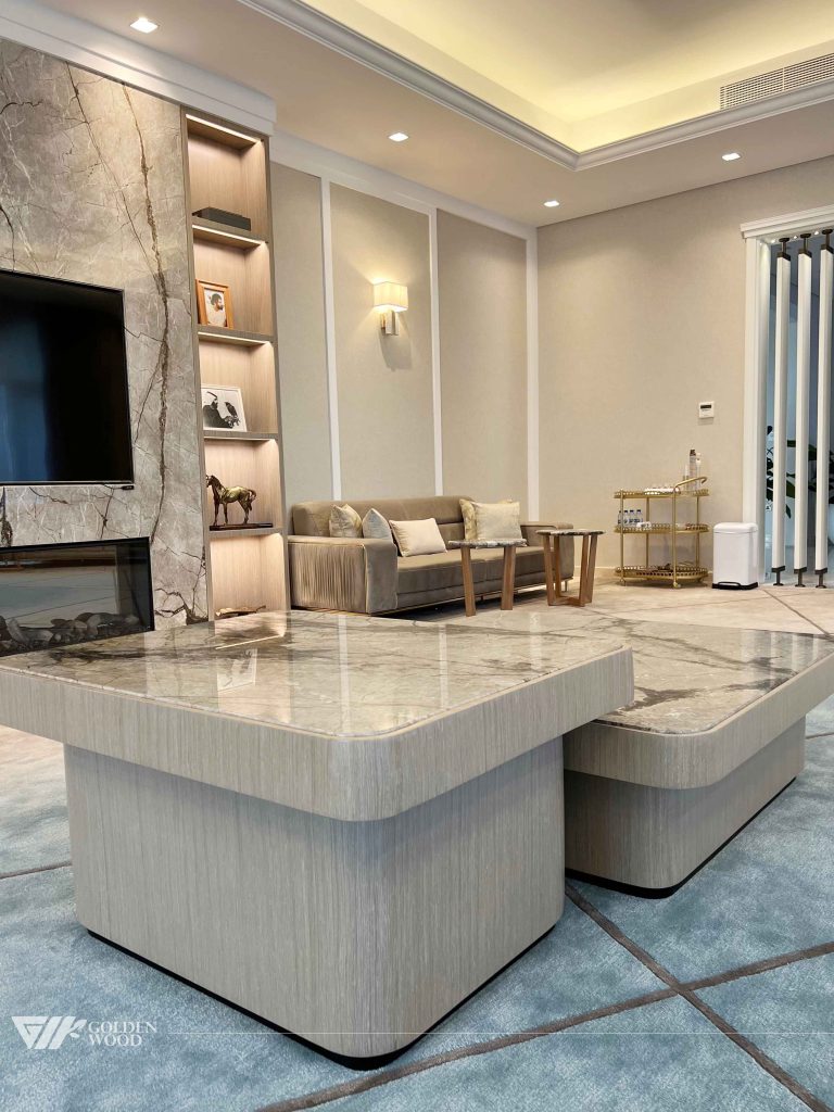 A sophisticated residential interior design project blending modern elegance with warm textures and refined finishes. Key features include marble-accented walls, luxurious custom furniture, soft ambient lighting, and a neutral color palette that enhances both comfort and aesthetics. Each room showcases meticulous attention to detail — from sculptural furnishings and layered materials to seamless functional layouts. The design reflects Golden Wood’s signature craftsmanship and commitment to timeless, livable luxury.