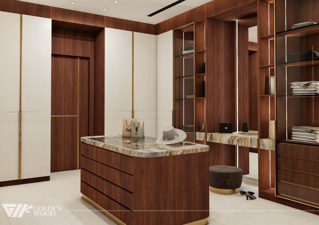 The Luxe Wardrobe is a signature Golden Wood project showcasing a collection of bespoke walk‑in closets, dressing rooms, and refined lifestyle spaces designed for modern luxury living. Each room is crafted with meticulous attention to detail, blending premium materials, intelligent organization, and timeless aesthetics.