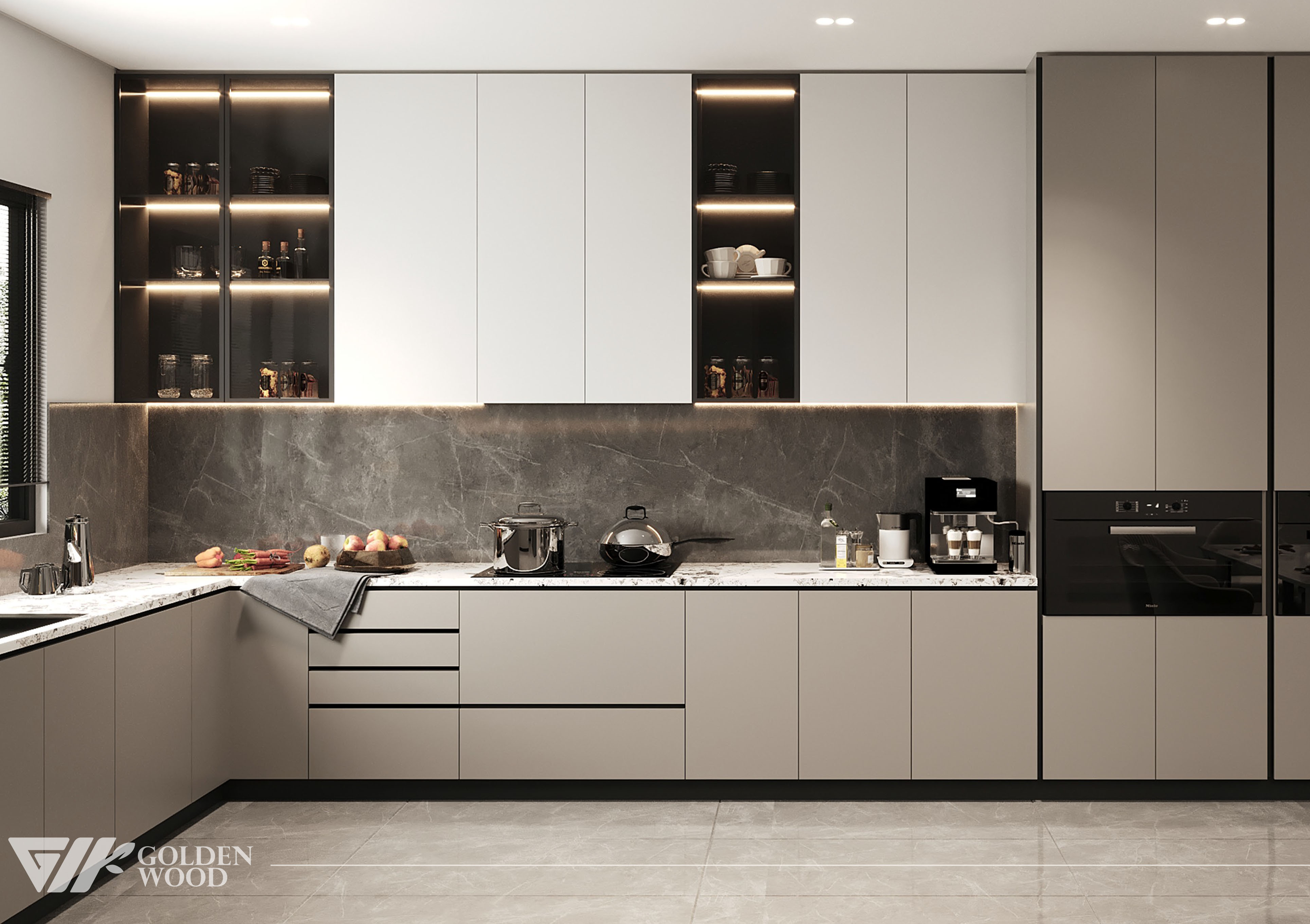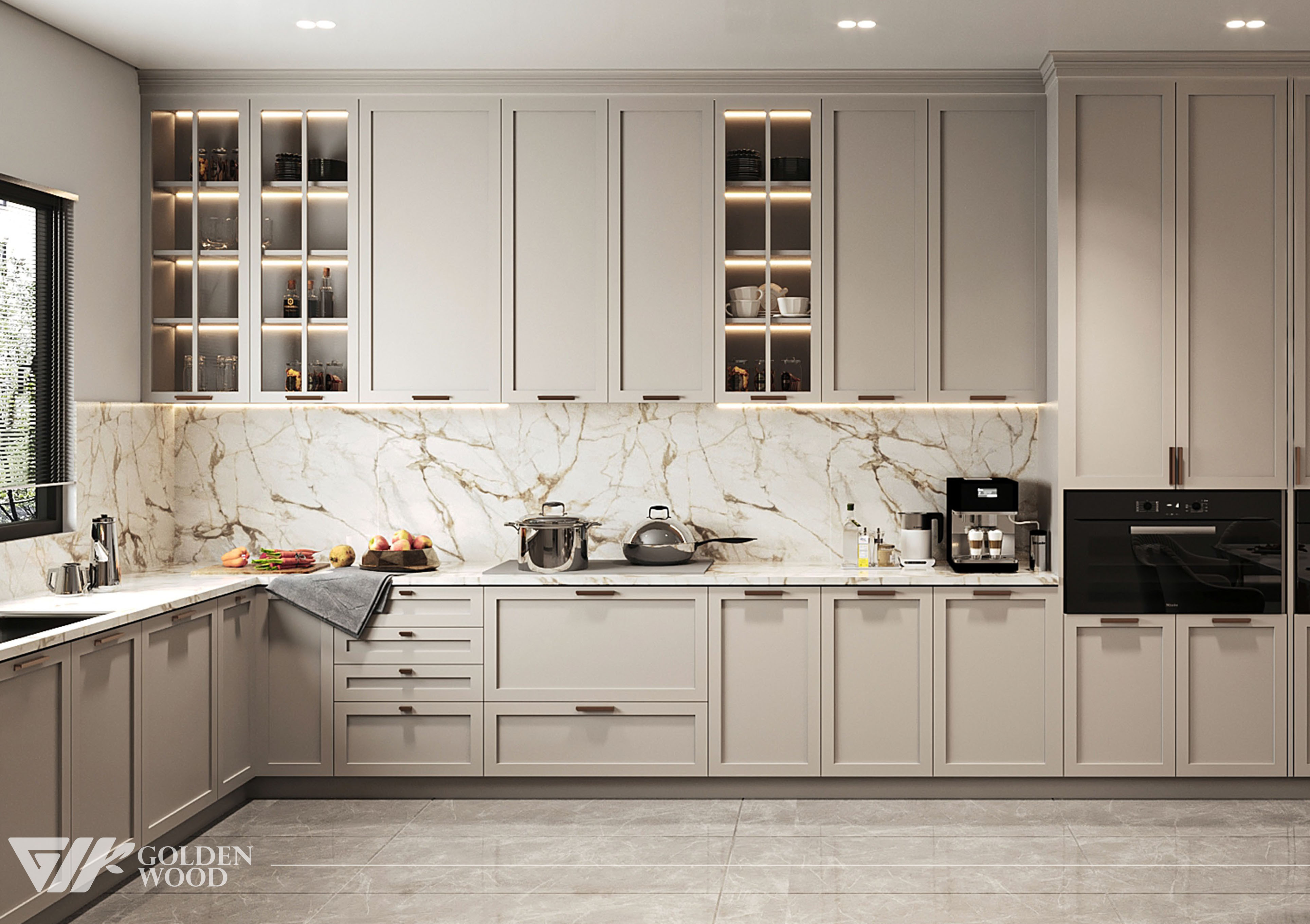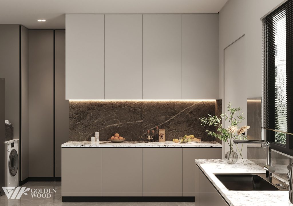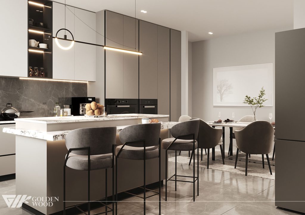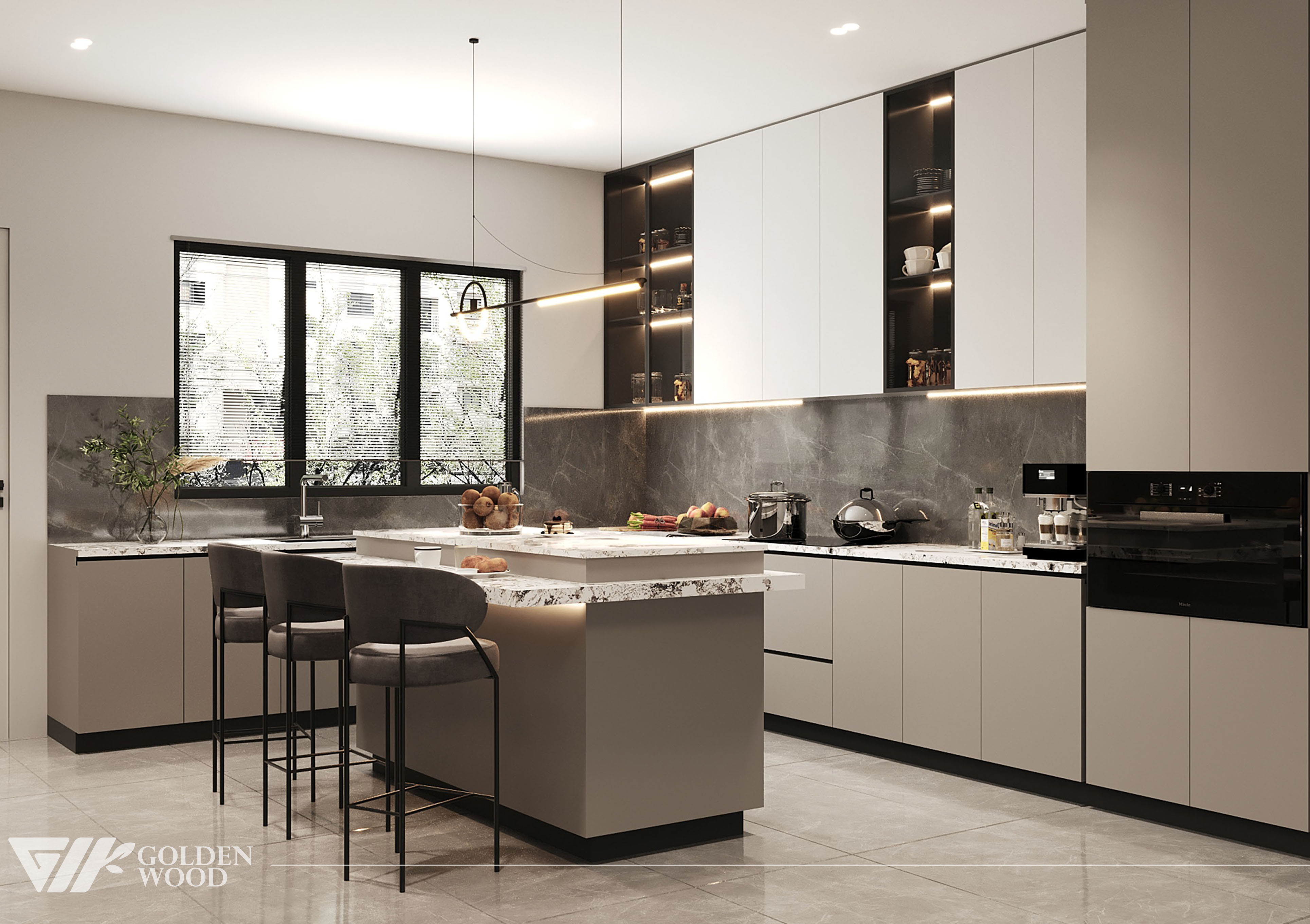 Golden Wood presents Marbella Project, a curated collection of contemporary kitchen interiors that blend minimalist elegance with functional sophistication. Each design features seamless cabinetry in soft neutral tones, complemented by bold marble countertops and backsplashes that serve as the visual centerpiece. Integrated lighting, high-end appliances, and refined material palettes elevate the ambiance, while thoughtful layouts ensure ergonomic flow and everyday practicality. From waterfall islands to ambient pendant lighting, Marbella Project redefines modern luxury for residential and hospitality spaces.