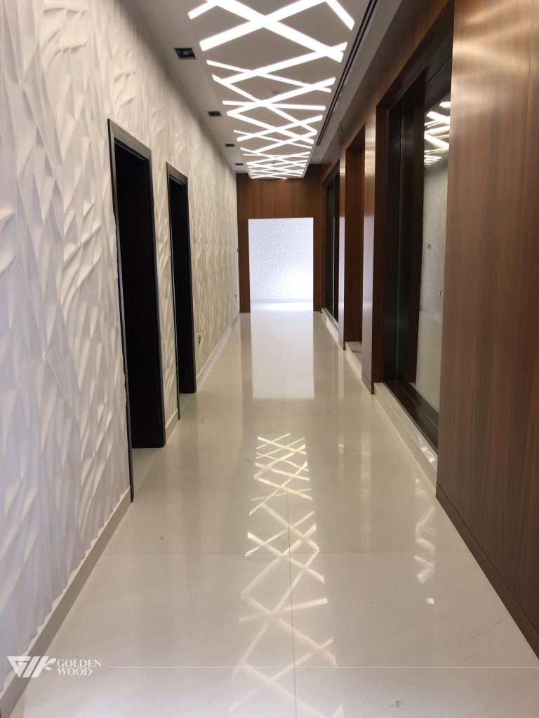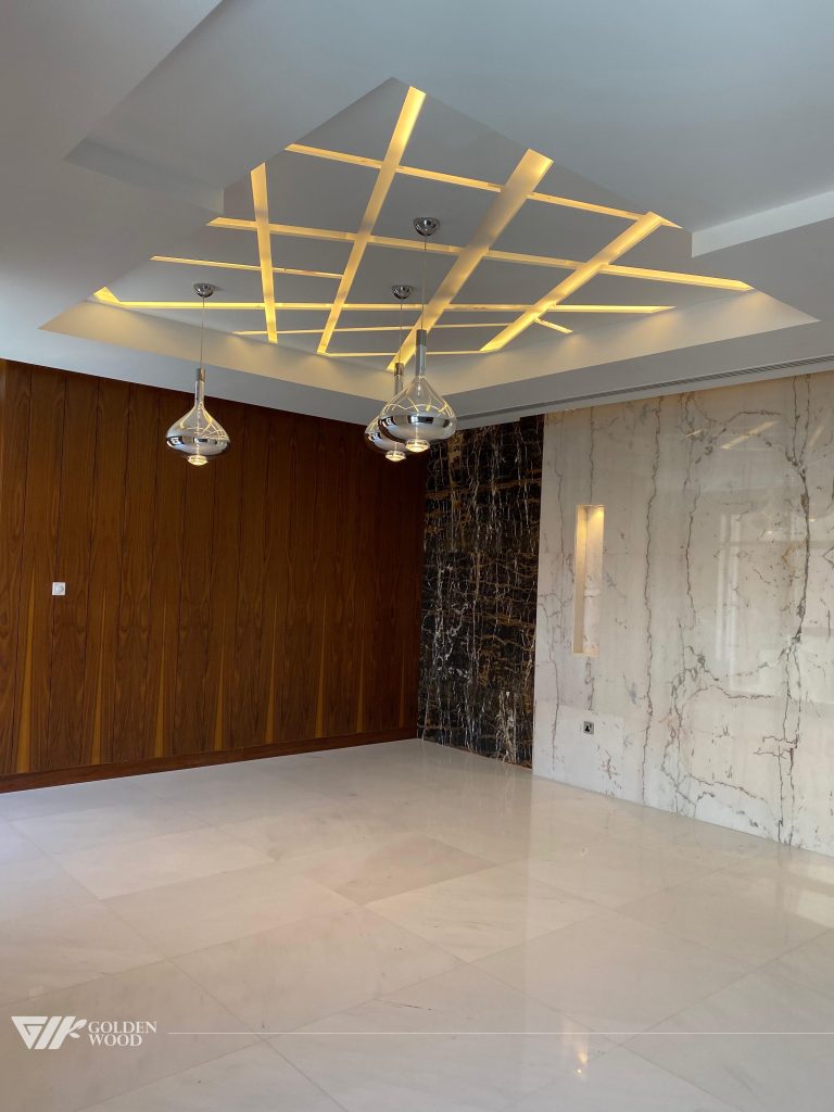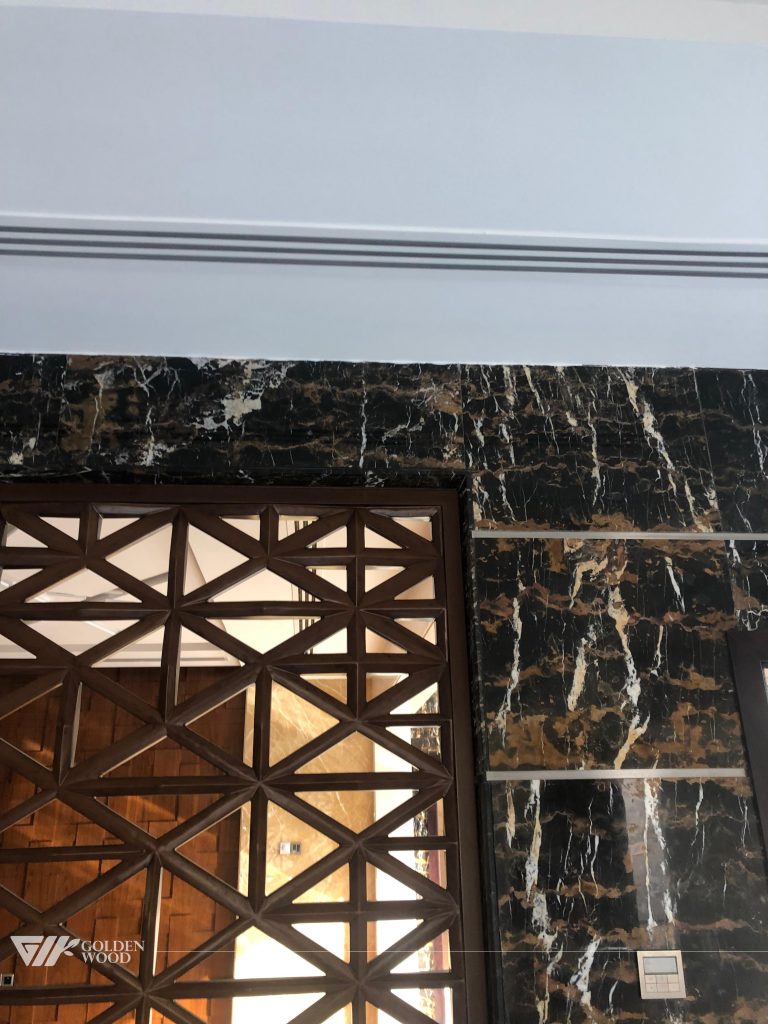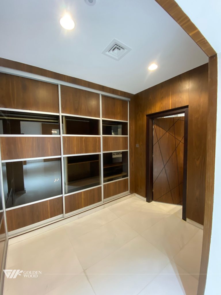 GW23-375 Noir Elegance Villa by Golden Wood is a luxurious residence that combines modern sophistication with timeless elegance. Featuring intricate wooden designs and sleek marble finishes, the villa boasts custom-crafted furniture, geometric door designs, and spacious interiors. The use of rich textures, from the striking wooden doors to the elegant cabinetry and detailed wall finishes, adds warmth and character to each room. With its high-end finishes and attention to detail, the Noir Elegance Villa is a true masterpiece of contemporary living, offering comfort, style, and luxury in every corner.
