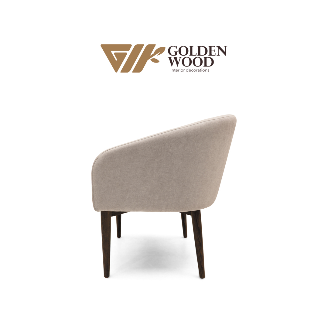 Elevate your interior with the Luna Curve Armchair — a harmonious blend of sculptural elegance and everyday comfort. Designed for modern living spaces, this chair features a gracefully curved backrest and plush upholstery in a soft beige tone, supported by rich dark wooden legs. Its minimalist silhouette and refined craftsmanship make it a versatile accent piece for lounges, bedrooms, or executive offices.
