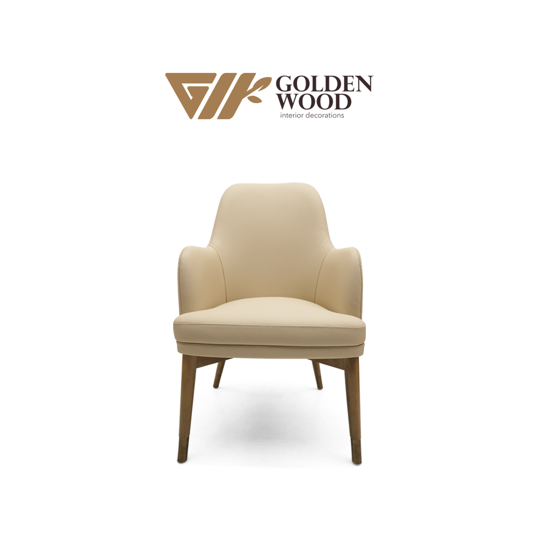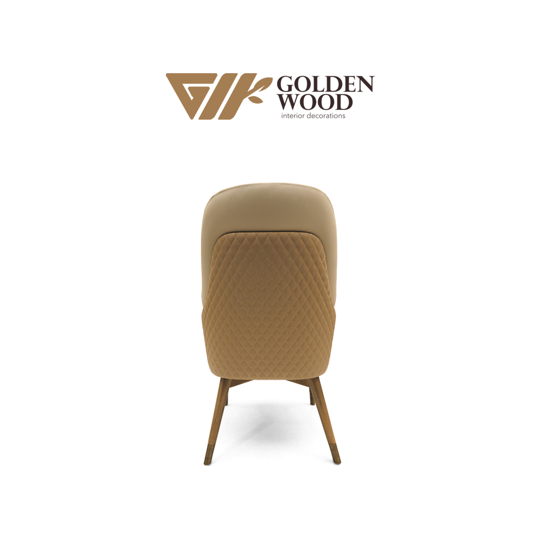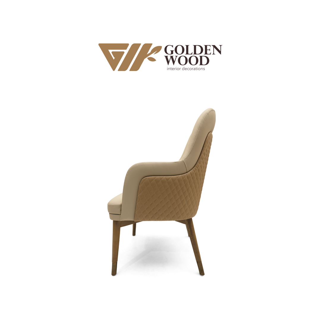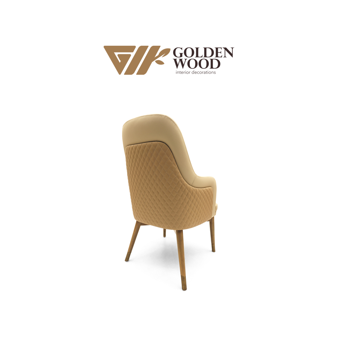 The Aurum Crest Chair is a refined fusion of texture, form, and comfort. Its smooth upper backrest flows seamlessly into a quilted lower section, creating a visual contrast that’s both sophisticated and inviting. Upholstered in warm beige tones and supported by tapered wooden legs, this chair is designed to complement luxury interiors with understated charm. Whether placed in a lounge, reception, or dining setting, Aurum Crest adds a touch of tailored elegance to any space.