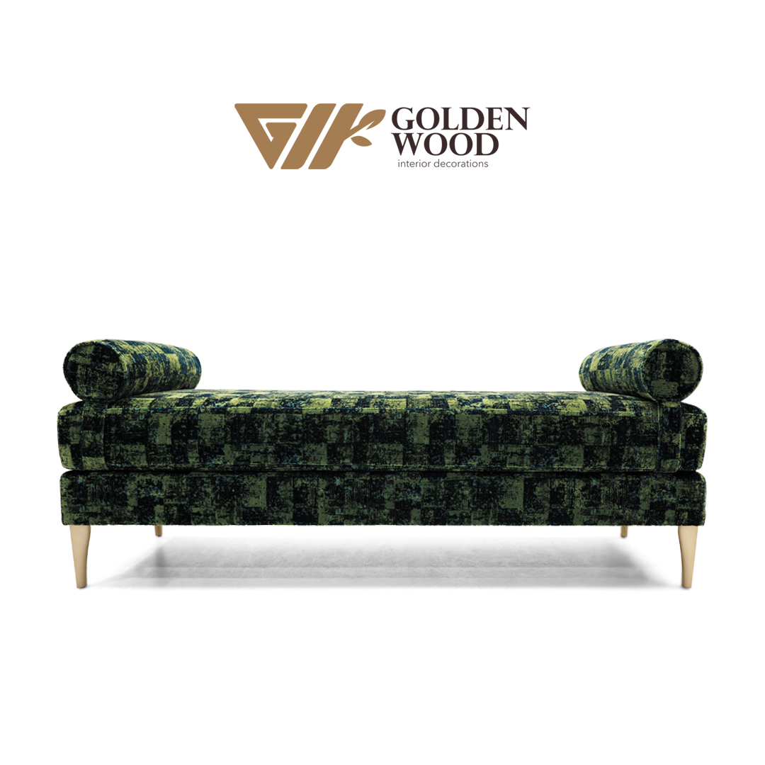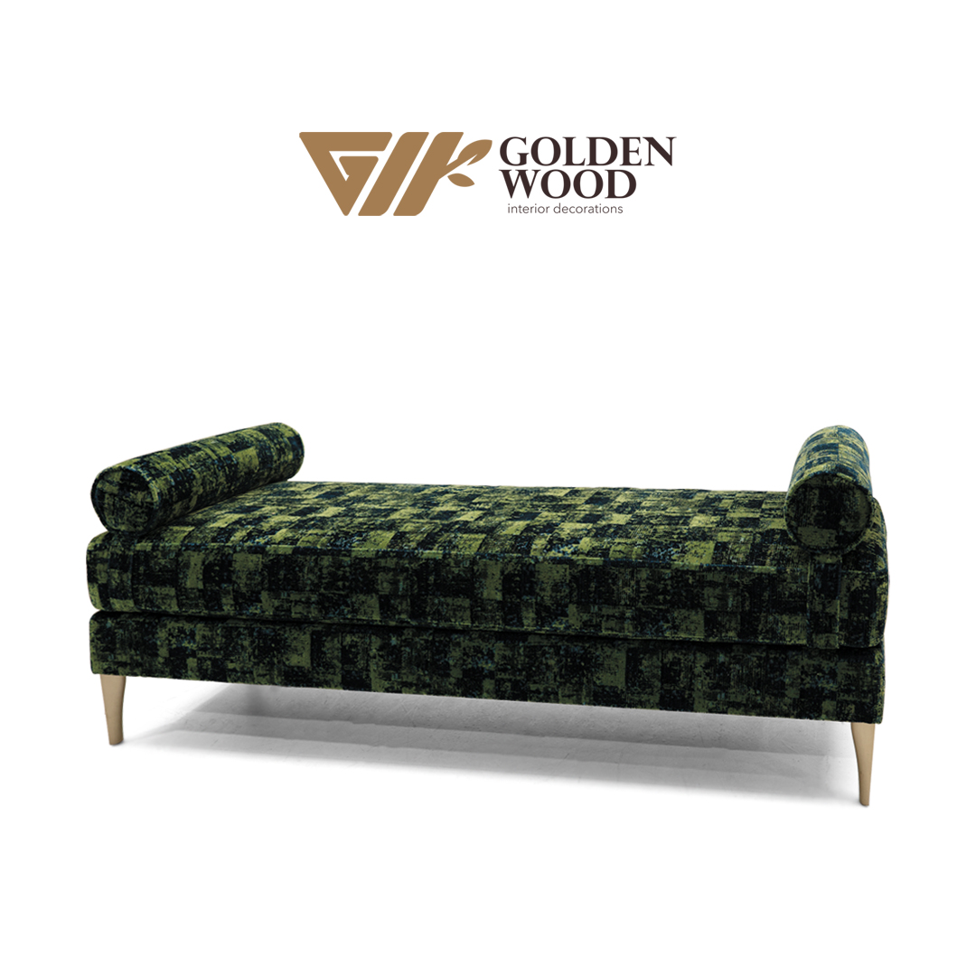 Elevate your interior with the Verdura Luxe Chaise — a statement piece that blends artistic flair with refined comfort. Upholstered in a striking green and black patterned fabric, this chaise lounge features dual bolster pillows and sleek tapered wooden legs, offering both visual intrigue and ergonomic support. Designed for modern living spaces, boutique lounges, or luxury bedrooms, it embodies Golden Wood’s commitment to craftsmanship and contemporary elegance.