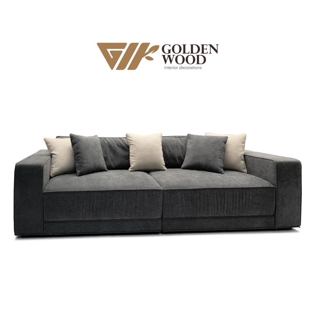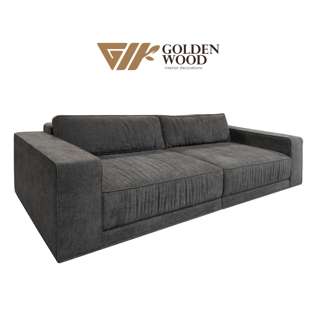 The Urban Slate Sofa by Golden Wood blends minimalist design with maximum comfort. Upholstered in rich, textured dark gray fabric, its low-profile silhouette and wide armrests offer a bold yet inviting presence. Designed for modern interiors, this piece anchors any space with understated elegance and versatile functionality—perfect for residential lounges, executive offices, or hospitality settings.
