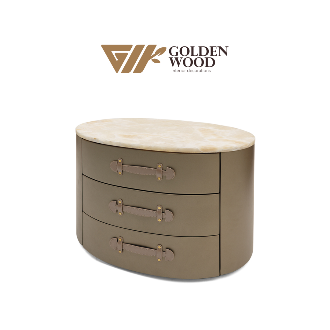 The Aura Chest is a masterful blend of sculptural form and functional luxury. With its soft, rounded silhouette and artisanal leather strap handles, this three-drawer piece evokes timeless sophistication. The marble-finished top adds a refined contrast, making it a statement piece for upscale interiors—from executive suites to boutique hospitality spaces. Designed by Golden Wood, it reflects a commitment to craftsmanship, elegance, and investment-worthy design.