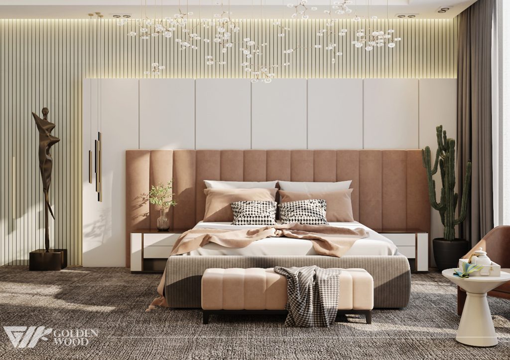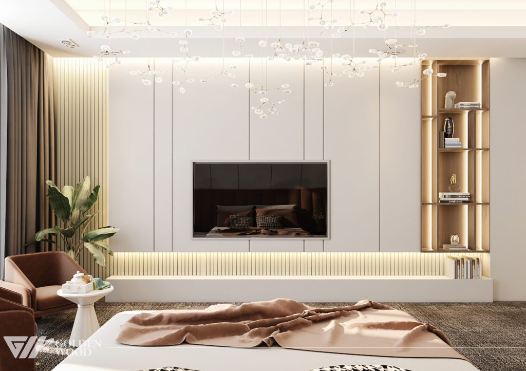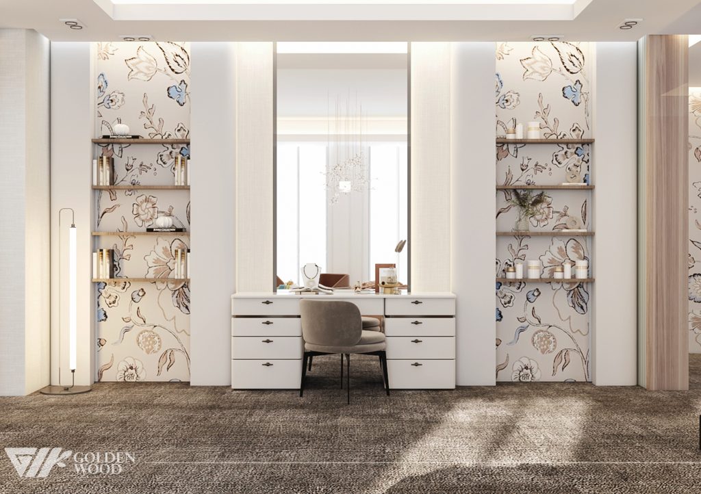 “Modern Elegance” embodies a sophisticated blend of minimalist design and luxurious comfort. This project features a series of open, airy spaces where light and texture interplay, creating an inviting yet elegant atmosphere. The carefully chosen color palette of soft neutrals, rich browns, and clean whites adds a sense of calm and warmth. Thoughtfully designed details, such as the floral-themed shelving, plush bedding, and contemporary lighting fixtures, highlight both functionality and style. The aesthetic is further enhanced by subtle architectural lines, high-quality materials, and artistic elements, culminating in a modern living experience that is both refined and cozy.