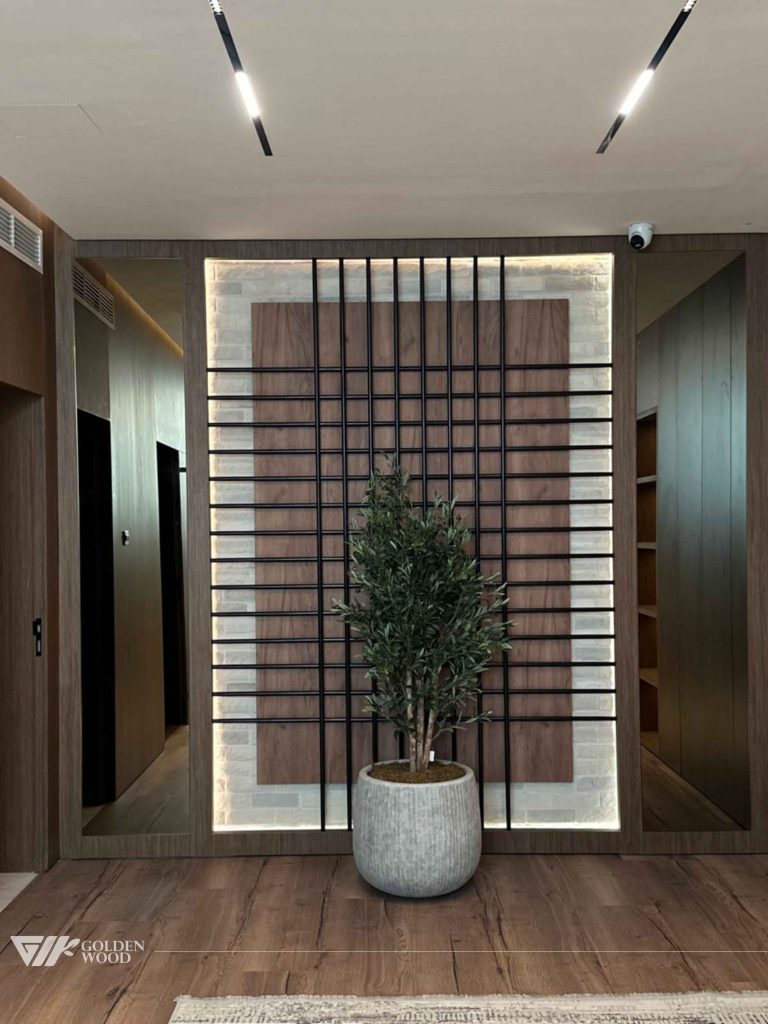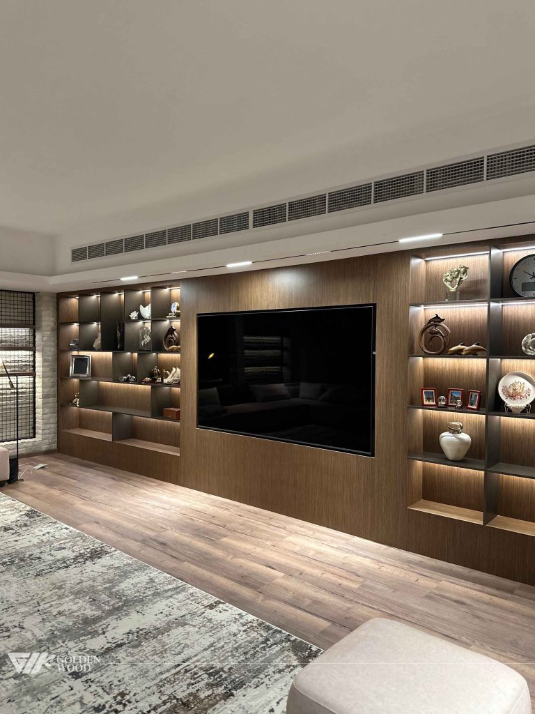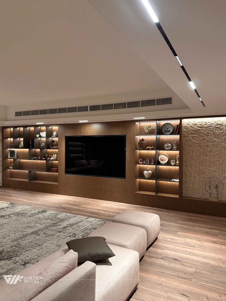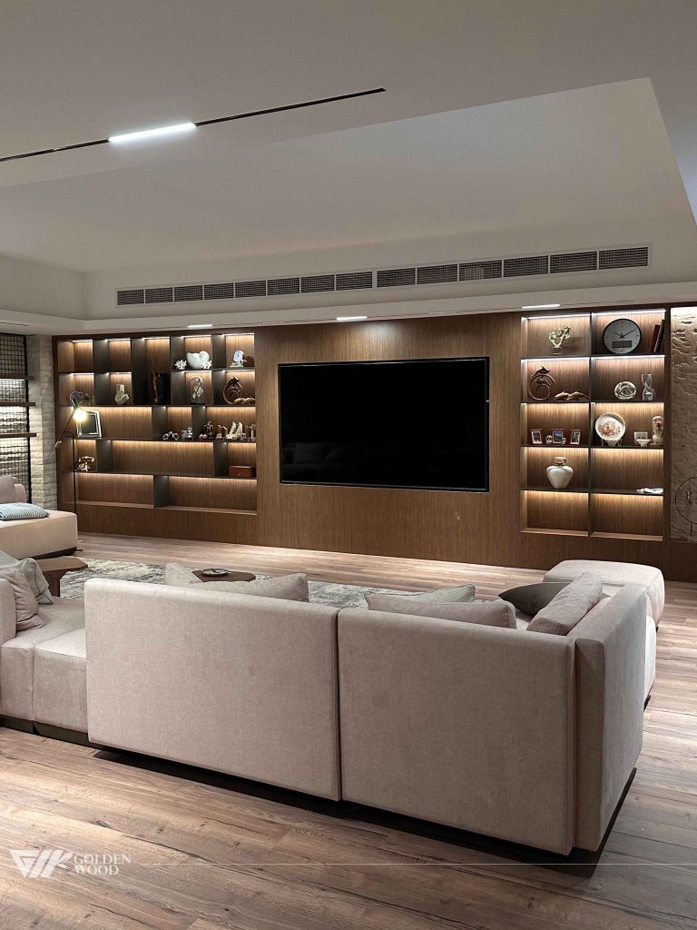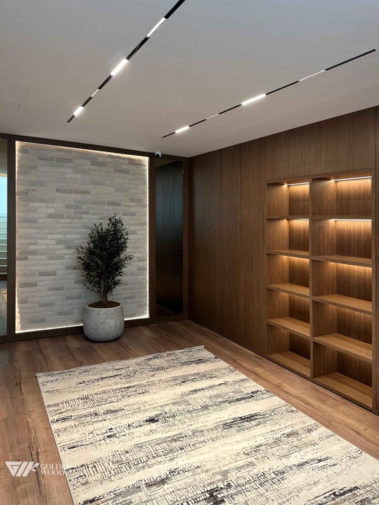 GW24-397 C41 Villa by Golden Wood is a stunning blend of modern design and natural textures, creating a refined, stylish living space. With a harmonious combination of stone, wood, and metal, the villa features sophisticated details like custom shelving units, contemporary lighting, and elegant wall textures. The open-plan living area, with its plush seating and warm tones, exudes comfort and luxury. Thoughtful design elements, such as the geometric patterns and sculptural decor, add artistic flair. The C41 Villa is a perfect example of Golden Wood’s commitment to creating elegant and functional spaces, offering a serene and sophisticated environment.